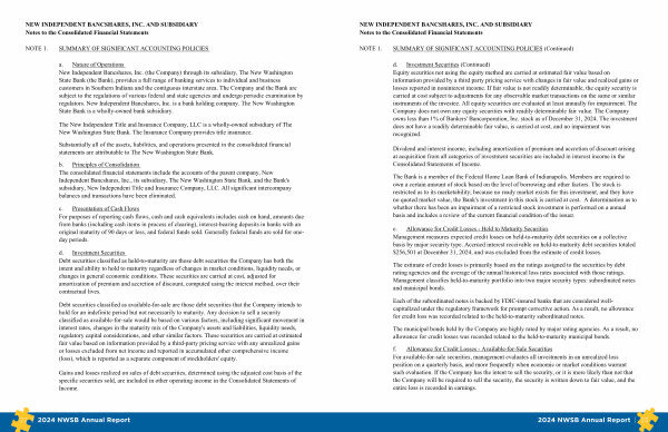 NEW INDEPENDENT BANCSHARES, INC. AND SUBSIDIARY